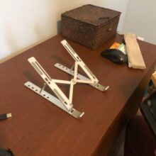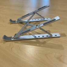 With staying indoors these days (Covid 19)… Zoom has become my new “normal”. Having to put my laptop on top of a box (find the right size) to get the perfect angle has been a hassle I didn’t need. I purchased this Stand… and I can’t be happier! It gives me the perfect angle for viewing and typing. Then it folds up and I can put it in a drawer until I need it next. I am thrilled with this and highly recommend it to anyone. VERY sturdy, has rubber lined on both sides (for your computer AND your table), folds neatly in a little pouch (provided), and holds my laptop perfectly. I tried it with my 15″ PC and it was fine with that size as well. LOVE!!!