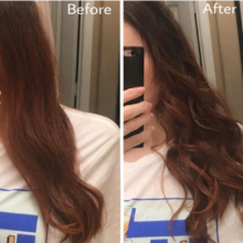 The Good • Portable waves/ curls anywhere (!!!) • Easy to learn • One handed hairstyling • No snags (!!) • Outside stays completely cool The Not-So-Good • Poor battery life • Inconsistent results • Must use very small sections RESULTS | I used on my long, fine, frizzy hair that holds a curl reasonably well. I was able to achieve some curls as shown in the after photo, but it took quite a few redos of curling the same strands over because the initial curl either had a a flattened end or was more wavy then a curl. This is very easy to achieve waves with. Curls are a little bit more tricky, at least for long hair. I think this would be great for someone with short hair.