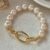 This isn’t just any bracelet. It’s a symbol of individuality and modern fashion. The unique blend of geometric shapes, crystal, and pearl elements provides a distinct look that sets you apart from the crowd. Plus, its durable construction ensures that it remains a part of your fashion repertoire for years to come.