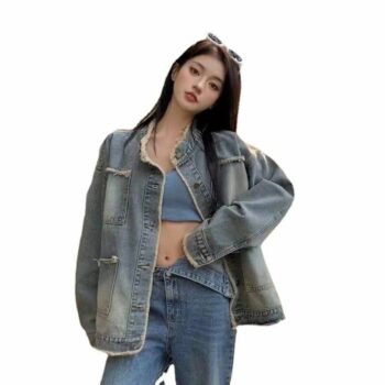 Women’s Korean-Style Denim Jacket – Trendy Loose Fit with Button Detail
