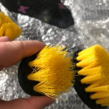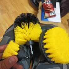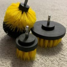 How have I lived without this? I used the heads to clean my shower and my cabinet doors in my kitchen. I am using different heads for different areas of the house. My kitchen cabinets are painted and I was scared that the power of the drill with the coarse brush would take off the paint but it only happened once. It was my fault. I pushed way too hard and the drill went on its side and the base of the brush went on the cabinet. Oops. I love these. You need to buy.