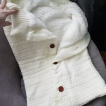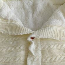 I was very impressed with the quality and style It is made of a soft high-quality knitting wool, fleece lined, which made it so soft and cuddly. It easily can keep a baby comfortable and warm. I love the cardigan sweater look with the buttons, and the full coverage sleeping swaddle blanket. It is for babies from 0 to 12 months, and can be used in all but the warmest seasons. I think this is such a nice good quality swaddle blanket and easily give it a 5-stars rating.