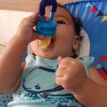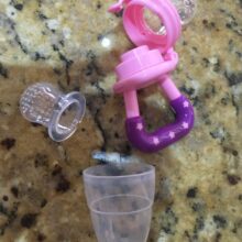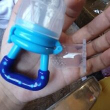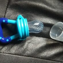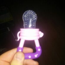 Prevent coughing and choking (or slapping away of the hand) from your little one by using this pacifier to ease your baby into tasting fruit.