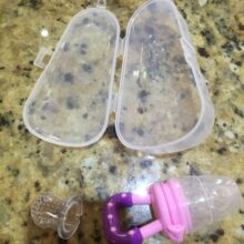 Each Fruit Feeder Pacifier (and feeder head) is made from high-quality silicone that is ultra soft. The pacifier is safe to wash under hot water with liquid soap, and each order comes with one dust cover to ensure that the pacifier stays clean when not used or protected if dropped accidentally.