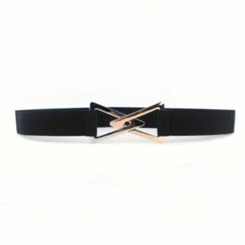 Elegant Elastic Metal Waist Belt with Geometric Leaf Buckle