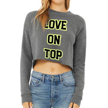 Love Print Cropped Sweatshirt – Cute Women’s Sweatshirt – Best Print Crop Crew Sweatshirt