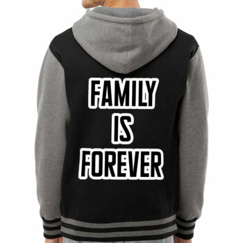 Family is Forever Varsity Hoodie – Cool Saying Zip Hoodie – Printed Hooded Sweatshirt
