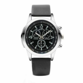 Elegant Quartz Men’s Watch with Blue Glass & Leather Strap