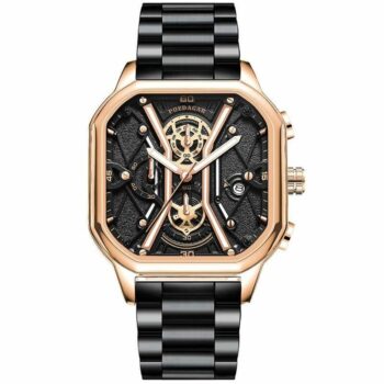 Waterproof Black Quartz Square Dial Men’s Wristwatch with Chronograph & Luminous Hands