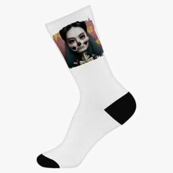 Cool Skeleton Socks – Floral Novelty Socks – Halloween Print Crew Socks