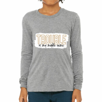Trouble Kids’ Long Sleeve T-Shirt – Themed T-Shirt – Cool Print Long Sleeve Tee