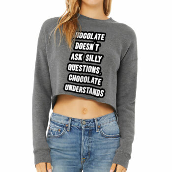 Chocolate Doesn’t Ask Silly Questions Chocolate Understands Cropped Sweatshirt – Funny Saying Women’s Sweatshirt – Graphic Crop Crew Sweatshirt