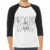features raglan 3/4 sleeves and a modern fit that is perfect for a day