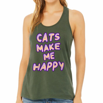 Cats Make Me Happy Women’s Racerback Tank – Cute Tank Top – Best Design Workout Tank