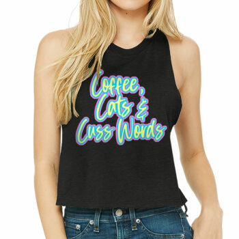 Cats Coffee Cuss Words Racerback Cropped Tank – Funny Women’s Tank – Trendy Tank Top