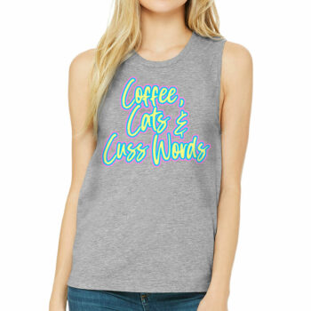 Cats Coffee Cuss Words Women’s Muscle Tank – Funny Tank Top – Trendy Workout Tank