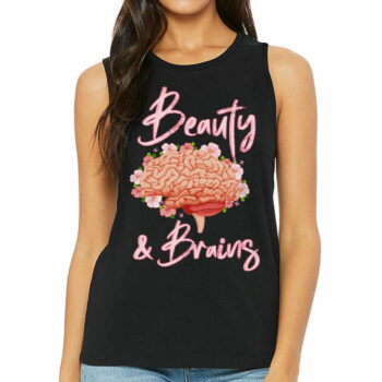 Beauty and Brains Women’s Muscle Tank – Floral Tank Top – Illustration Workout Tank