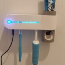 Very cool antibacterial holder. Beautiful design! Holds everyones toothbrush and sanitizes them effortlessly. Great product to save counter space & have a clean toothbrush. Very great product!