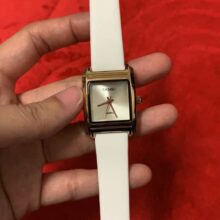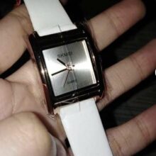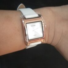 This is a very nice watch. My watches with white bands are getting a bit old so I decided to buy a new one. I saw this one and it is so cute with a big square face and golden color case and hands. It also has a nice band. Would totally recommend it!!!