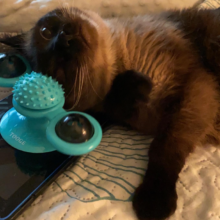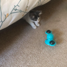 Our spinning toy is more than a windmill for your cat to stare at in wonder. Its interactive nature and spiky center surface make it a great tool as well for comfort and for developing motor and visual skills. With our Windmill Cat Toy, your kitty can: